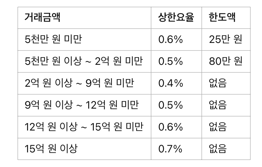 ✔ 거래 유형별 중개수수료 요율 확인 필수