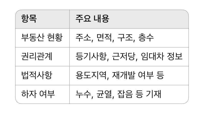 •거래가 진행되기 전에 부동산의 권리관계, 구조, 하자, 법적 정보 등을 전달하고,